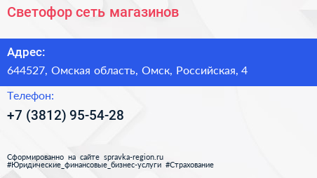Светофор, сеть магазинов по адресу 644527, Омская область, Омск, Российская, 4 в дальнейшем Организация, размещена в следующих категориях: