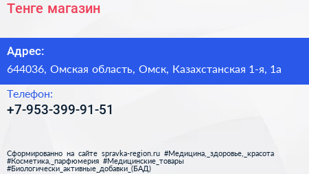 Тенге, магазин по адресу 644036, Омская область, Омск, Казахстанская 1-я, 1а в дальнейшем Организация, размещена в следующих категориях: