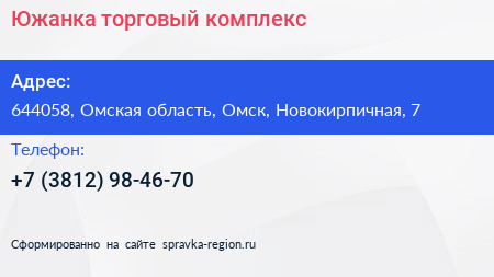 Южанка, торговый комплекс по адресу 644058, Омская область, Омск, Новокирпичная, 7 в дальнейшем Организация, размещена в следующих категориях: