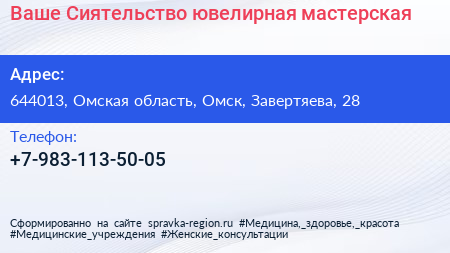 Ваше Сиятельство, ювелирная мастерская по адресу 644013, Омская область, Омск, Завертяева, 28 в дальнейшем Организация, размещена в следующих категориях: