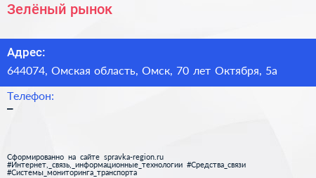 Зелёный, рынок по адресу 644074, Омская область, Омск, 70 лет Октября, 5а в дальнейшем Организация, размещена в следующих категориях: