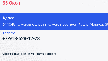 55 Окон по адресу 644048, Омская область, Омск, проспект Карла Маркса, 38 в дальнейшем Организация, размещена в следующих категориях: