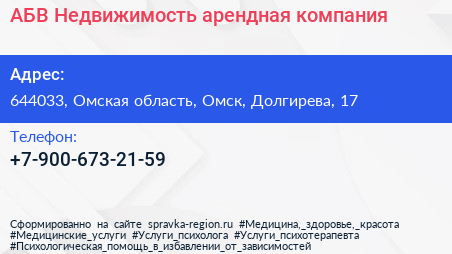 АБВ Недвижимость, арендная компания по адресу 644033, Омская область, Омск, Долгирева, 17 в дальнейшем Организация, размещена в следующих категориях: