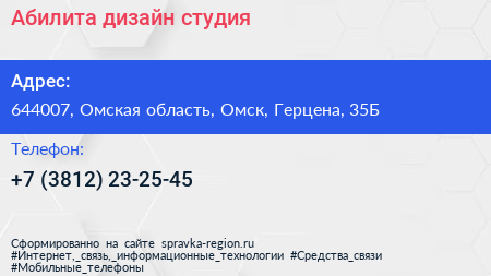 Абилита, дизайн-студия по адресу 644007, Омская область, Омск, Герцена, 35Б в дальнейшем Организация, размещена в следующих категориях:
