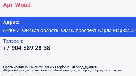 Арт Wood по адресу 644042, Омская область, Омск, проспект Карла Маркса, 24 в дальнейшем Организация, размещена в следующих категориях: