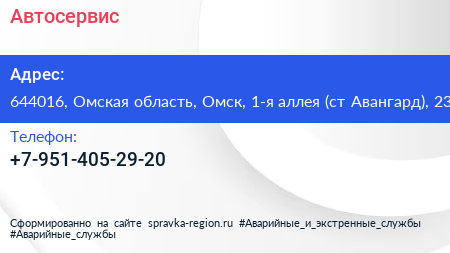 Автосервис по адресу 644016, Омская область, Омск, 1-я аллея (ст Авангард), 231 в дальнейшем Организация, размещена в следующих категориях: