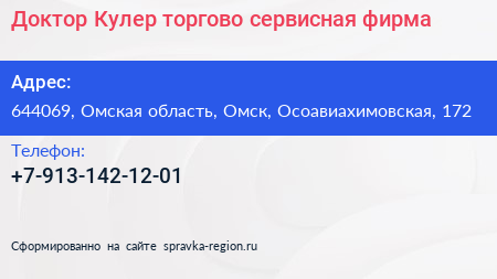 Доктор Кулер, торгово-сервисная фирма по адресу 644069, Омская область, Омск, Осоавиахимовская, 172 в дальнейшем Организация, размещена в следующих категориях: