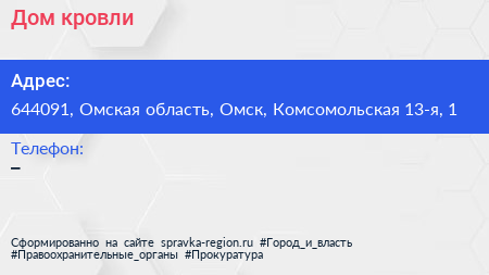 Дом кровли по адресу 644091, Омская область, Омск, Комсомольская 13-я, 1 в дальнейшем Организация, размещена в следующих категориях: