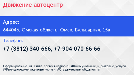 Движение, автоцентр по адресу 644046, Омская область, Омск, Бульварная, 15а в дальнейшем Организация, размещена в следующих категориях: