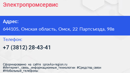 Электропромсервис по адресу 644105, Омская область, Омск, 22 Партсъезда, 98в в дальнейшем Организация, размещена в следующих категориях: