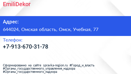 EmiliDekor по адресу 644024, Омская область, Омск, Учебная, 77 в дальнейшем Организация, размещена в следующих категориях: