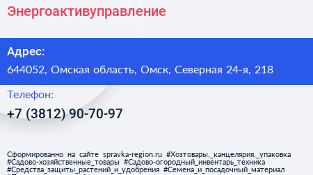 Энергоактивуправление по адресу 644052, Омская область, Омск, Северная 24-я, 218 в дальнейшем Организация, размещена в следующих категориях:
