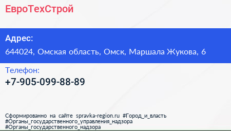 ЕвроТехСтрой по адресу 644024, Омская область, Омск, Маршала Жукова, 6 в дальнейшем Организация, размещена в следующих категориях: