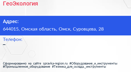 ГеоЭкология по адресу 644015, Омская область, Омск, Суровцева, 28 в дальнейшем Организация, размещена в следующих категориях: