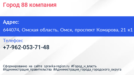 Город 88, компания по адресу 644074, Омская область, Омск, проспект Комарова, 21 к1 в дальнейшем Организация, размещена в следующих категориях: