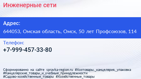 Инженерные сети по адресу 644053, Омская область, Омск, 50 лет Профсоюзов, 114 в дальнейшем Организация, размещена в следующих категориях: