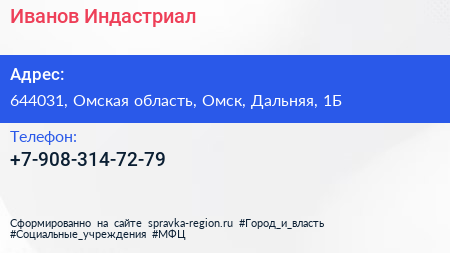 Иванов Индастриал по адресу 644031, Омская область, Омск, Дальняя, 1Б в дальнейшем Организация, размещена в следующих категориях: