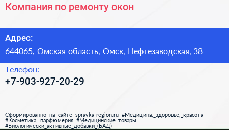 Компания по ремонту окон по адресу 644065, Омская область, Омск, Нефтезаводская, 38 в дальнейшем Организация, размещена в следующих категориях: