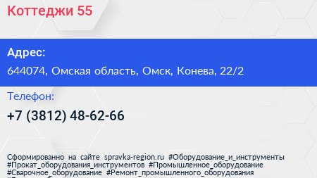 Коттеджи 55 по адресу 644074, Омская область, Омск, Конева, 22/2 в дальнейшем Организация, размещена в следующих категориях: