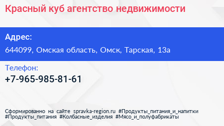 Красный куб, агентство недвижимости по адресу 644099, Омская область, Омск, Тарская, 13а в дальнейшем Организация, размещена в следующих категориях:
