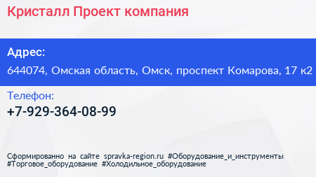 Кристалл Проект, компания по адресу 644074, Омская область, Омск, проспект Комарова, 17 к2 в дальнейшем Организация, размещена в следующих категориях: