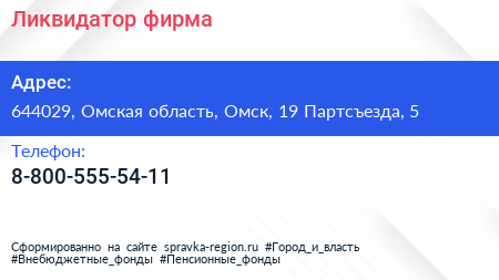 Ликвидатор, фирма по адресу 644029, Омская область, Омск, 19 Партсъезда, 5 в дальнейшем Организация, размещена в следующих категориях: