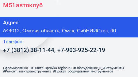М51, автоклуб по адресу 644012, Омская область, Омск, СибНИИСхоз, 40 в дальнейшем Организация, размещена в следующих категориях: