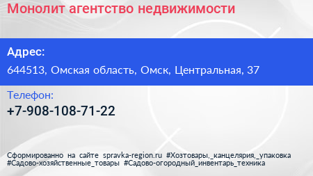 Монолит, агентство недвижимости по адресу 644513, Омская область, Омск, Центральная, 37 в дальнейшем Организация, размещена в следующих категориях: