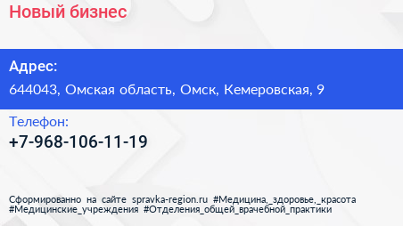 Новый бизнес по адресу 644043, Омская область, Омск, Кемеровская, 9 в дальнейшем Организация, размещена в следующих категориях: