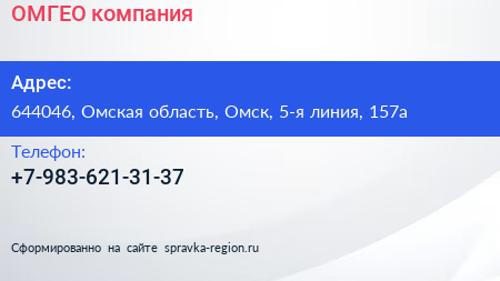ОМГЕО, компания по адресу 644046, Омская область, Омск, 5-я линия, 157а в дальнейшем Организация, размещена в следующих категориях: