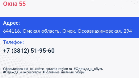 Окна 55 по адресу 644116, Омская область, Омск, Осоавиахимовская, 294 в дальнейшем Организация, размещена в следующих категориях: