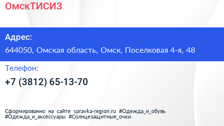 ОмскТИСИЗ по адресу 644050, Омская область, Омск, Поселковая 4-я, 48 в дальнейшем Организация, размещена в следующих категориях: