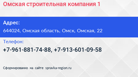 Омская строительная компания-1 по адресу 644024, Омская область, Омск, Омская, 22 в дальнейшем Организация, размещена в следующих категориях: