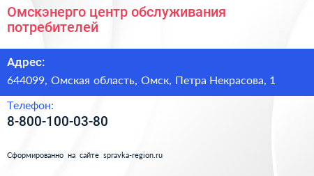 Омскэнерго, центр обслуживания потребителей по адресу 644099, Омская область, Омск, Петра Некрасова, 1 в дальнейшем Организация, размещена в следующих категориях: