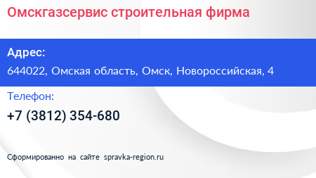 Омскгазсервис, строительная фирма по адресу 644022, Омская область, Омск, Новороссийская, 4 в дальнейшем Организация, размещена в следующих категориях: