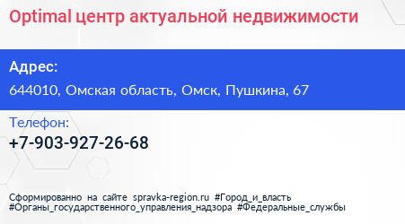 Optimal, центр актуальной недвижимости по адресу 644010, Омская область, Омск, Пушкина, 67 в дальнейшем Организация, размещена в следующих категориях:
