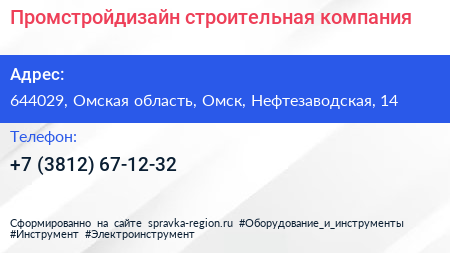 Промстройдизайн, строительная компания по адресу 644029, Омская область, Омск, Нефтезаводская, 14 в дальнейшем Организация, размещена в следующих категориях: