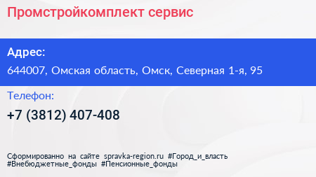 Промстройкомплект-сервис по адресу 644007, Омская область, Омск, Северная 1-я, 95 в дальнейшем Организация, размещена в следующих категориях: