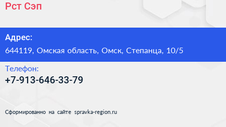 Рст Сэп по адресу 644119, Омская область, Омск, Степанца, 10/5 в дальнейшем Организация, размещена в следующих категориях: