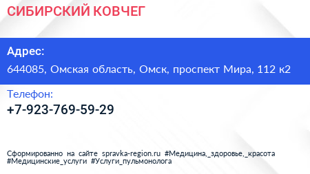 СИБИРСКИЙ КОВЧЕГ по адресу 644085, Омская область, Омск, проспект Мира, 112 к2 в дальнейшем Организация, размещена в следующих категориях: