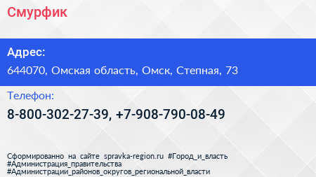 Смурфик по адресу 644070, Омская область, Омск, Степная, 73 в дальнейшем Организация, размещена в следующих категориях: