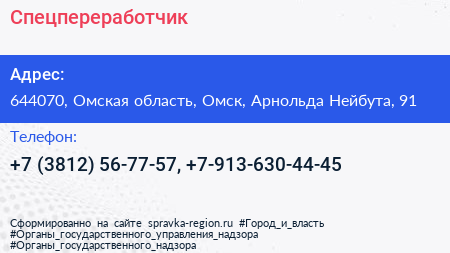 Спецпереработчик по адресу 644070, Омская область, Омск, Арнольда Нейбута, 91 в дальнейшем Организация, размещена в следующих категориях: