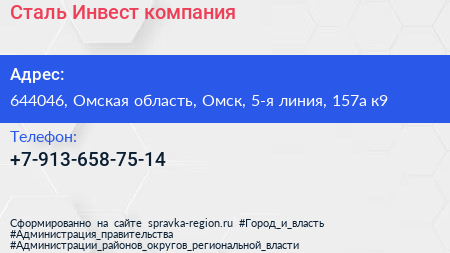 Сталь Инвест, компания по адресу 644046, Омская область, Омск, 5-я линия, 157а к9 в дальнейшем Организация, размещена в следующих категориях: