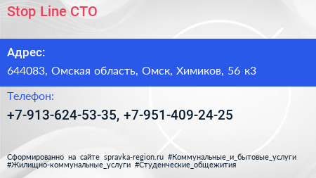 Stop Line, СТО по адресу 644083, Омская область, Омск, Химиков, 56 к3 в дальнейшем Организация, размещена в следующих категориях:
