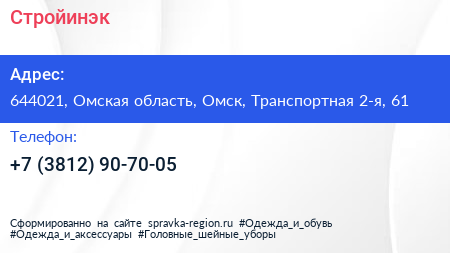 Стройинэк по адресу 644021, Омская область, Омск, Транспортная 2-я, 61 в дальнейшем Организация, размещена в следующих категориях: