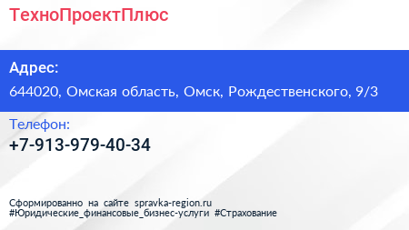 ТехноПроектПлюс по адресу 644020, Омская область, Омск, Рождественского, 9/3 в дальнейшем Организация, размещена в следующих категориях: