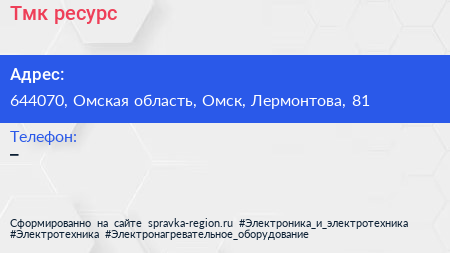 Тмк-ресурс по адресу 644070, Омская область, Омск, Лермонтова, 81 в дальнейшем Организация, размещена в следующих категориях: