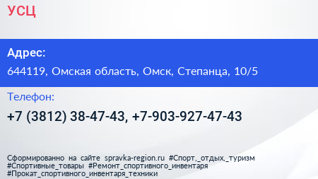 УСЦ по адресу 644119, Омская область, Омск, Степанца, 10/5 в дальнейшем Организация, размещена в следующих категориях:
