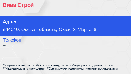 Вива Строй по адресу 644010, Омская область, Омск, 8 Марта, 8 в дальнейшем Организация, размещена в следующих категориях: