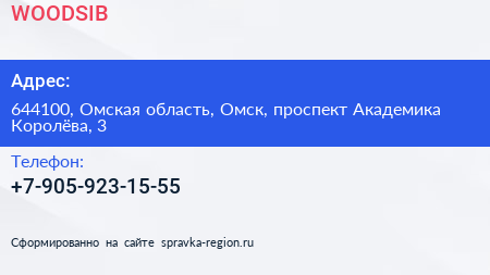 WOODSIB по адресу 644100, Омская область, Омск, проспект Академика Королёва, 3 в дальнейшем Организация, размещена в следующих категориях:
